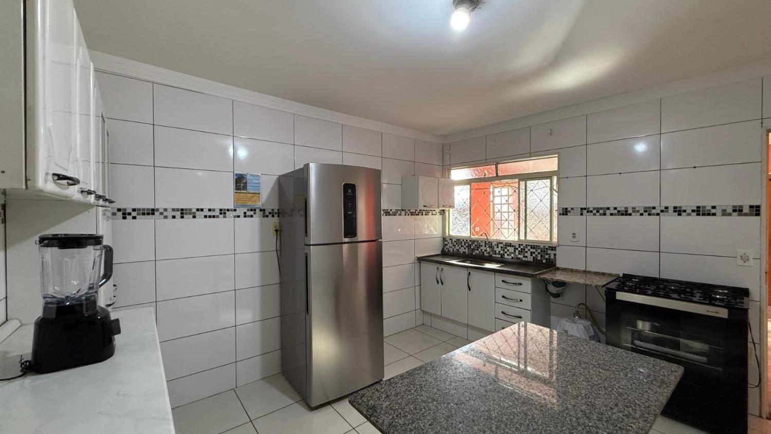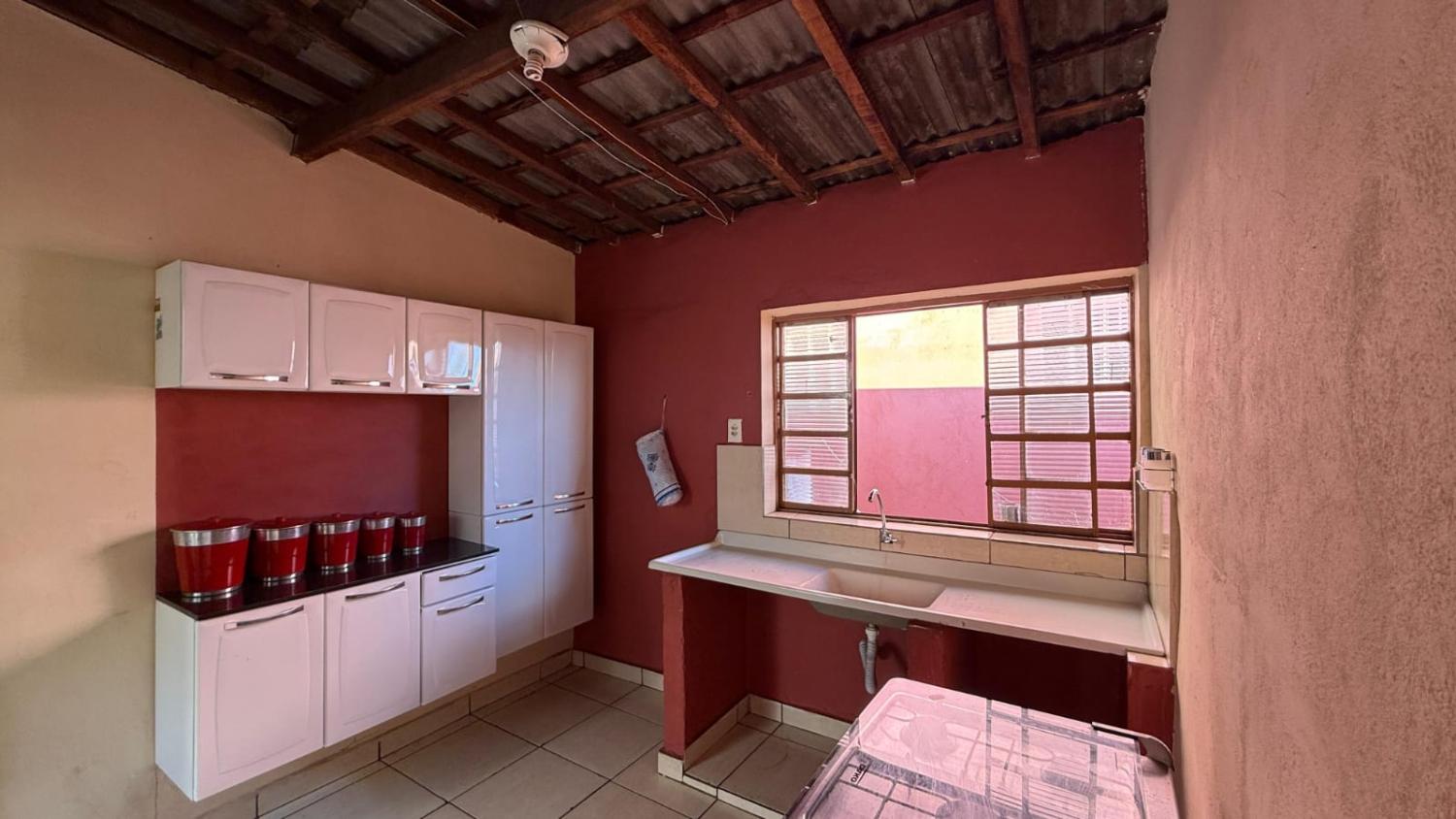 • Cozinha espaçosa, com pia e armário