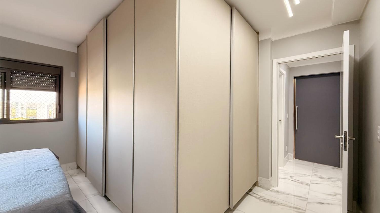 Suíte 2: armários planejados com portas de correr, excelente espaço interno e ar-condicionado