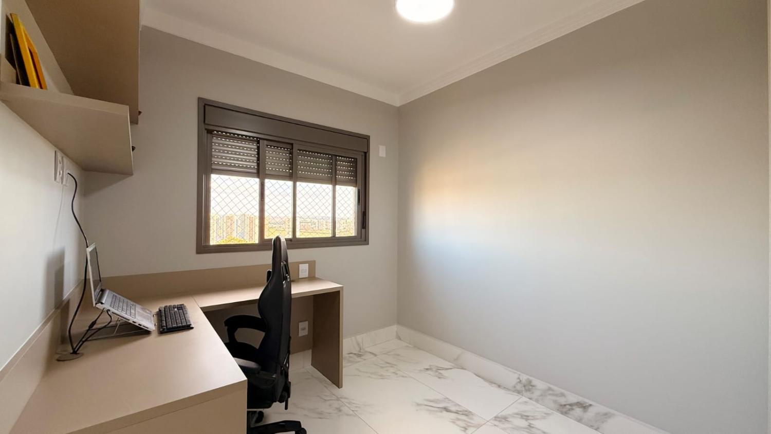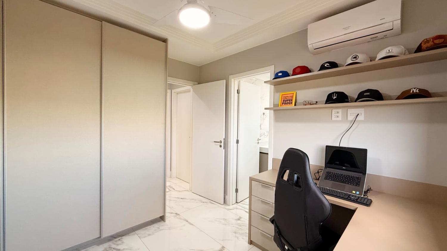 Suíte 1: armários planejados, bancada para estudos/home office, ar-condicionado