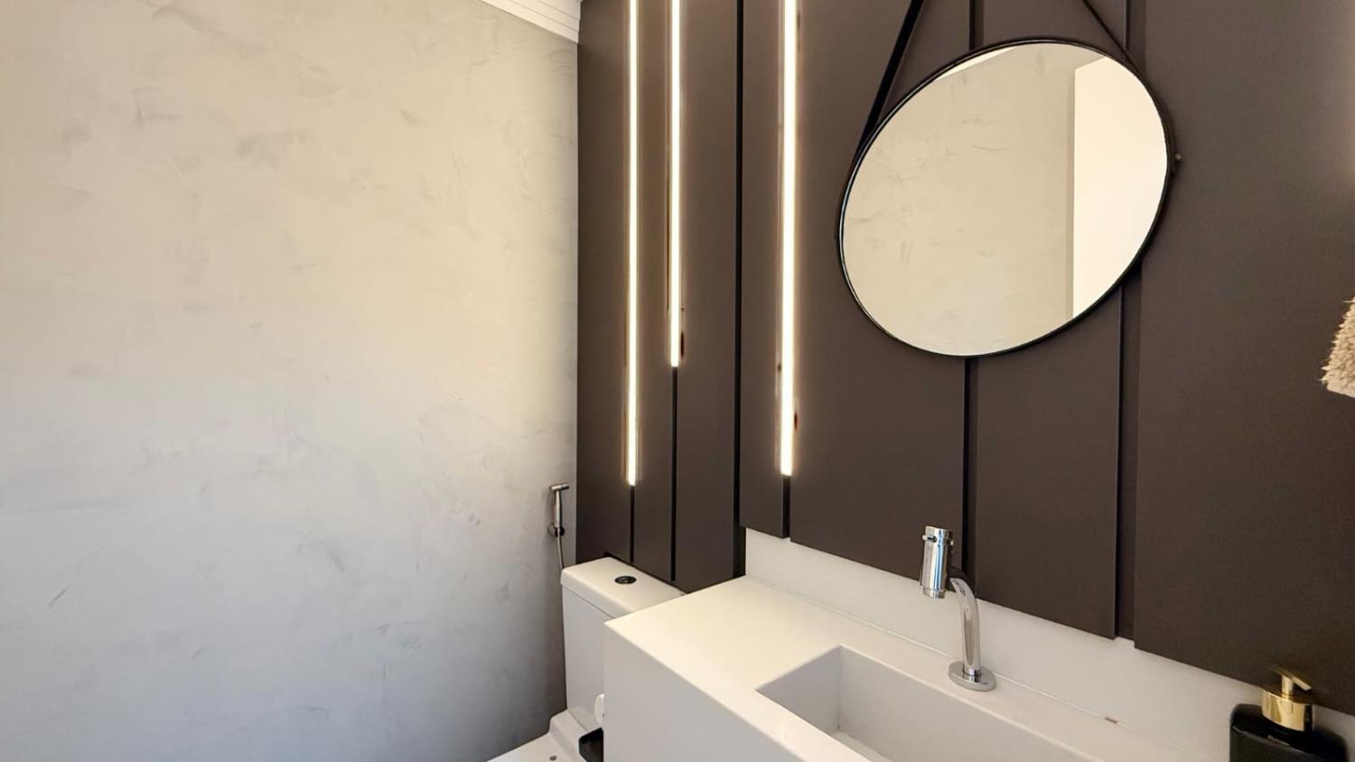 Logo na entrada, o apartamento conta com um lavabo elegante.