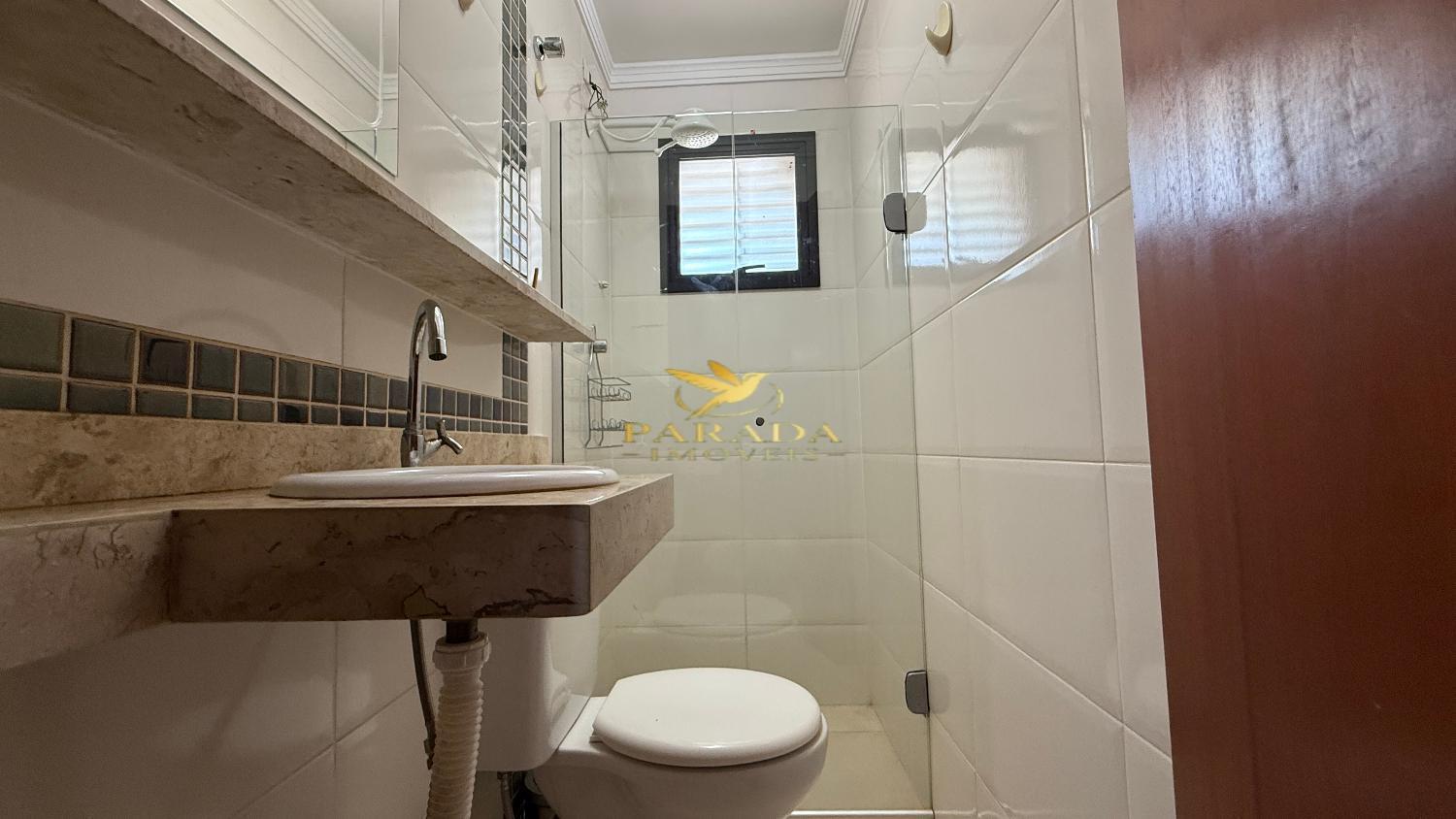 Banheiro social com revestimento até o teto + box blindex